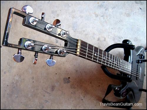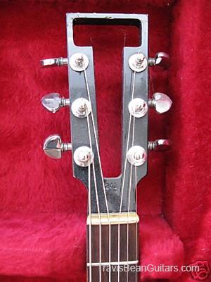 This is a natural finish magnolia w/ black pick guard, plastic pick up covers, and original tuning keys. It has replaced volume/tone knobs and small stress cracks at the neck joint that I had repaired.