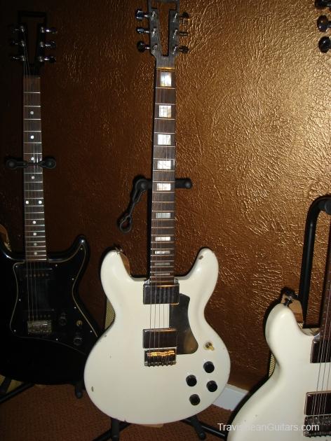 Description:   Beautiful thin body pearl white finish was restored by hours of careful stain removal. Was not refinished. See before & after pics!! Completed September 1978. 100% original with original case.