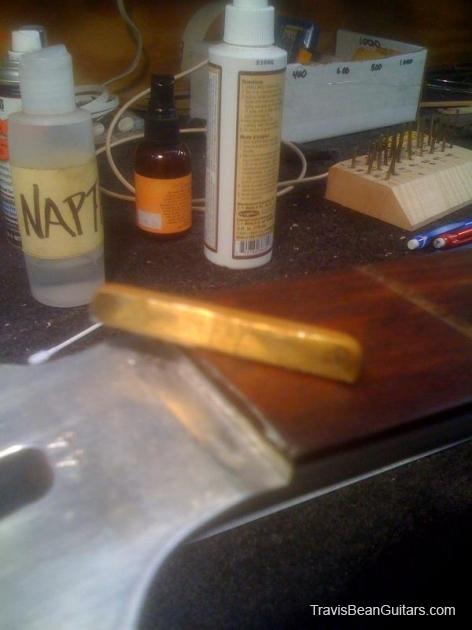 White Finish. Has the letters 'AP' within the neck receiver. Refretted in Aug 2011 by Gruhn Guitars.