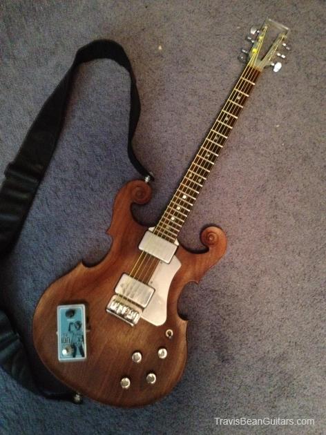 When I bought it, the body was destroyed to the point of being unplayable. I sent it to Les Godfrey, who makes my basses to replace the body. It's made of Koa like the original, but he decided to make the body match the basses he had already made for me.