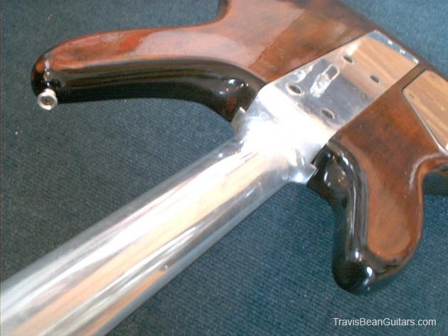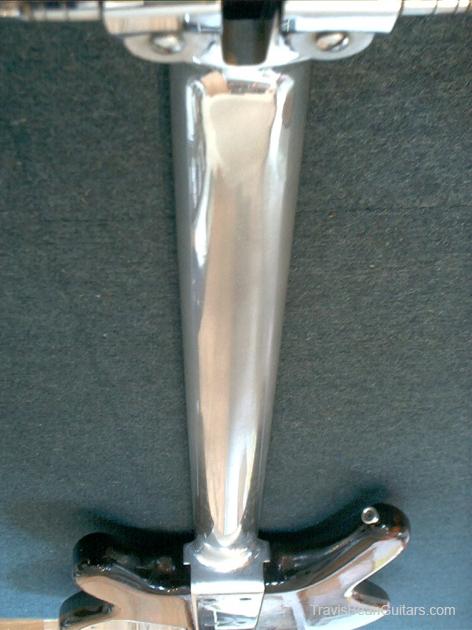 Immediately after I purchased this, I took it to Suburban Guitar in Lockport, NY for a little TLC: Pete installed a new fretboard and frets with pearl inlays on top and aluminum inlays on the sides, and a new nut. The first batch of photos with the grey/blue background were uploaded by the previous owner and the ones with a brown zebra background are current. Love this.