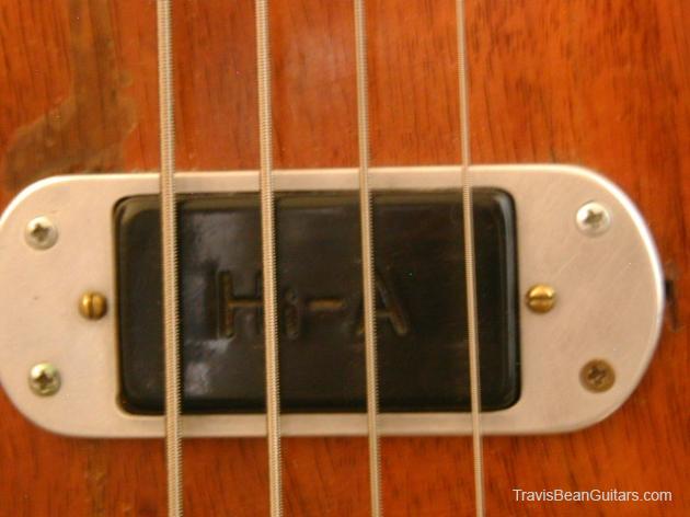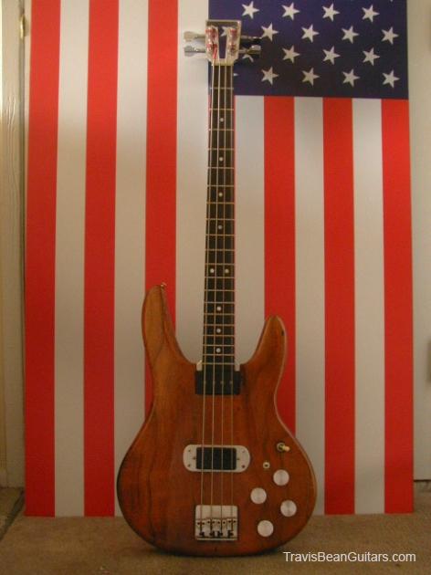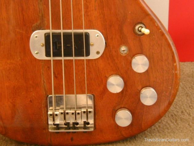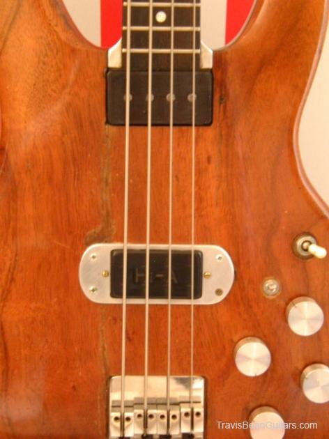 I got my Bean here in Boulder,Colorado(the date above is an approximation, it was sometime in '77) In 1980 the bridge pickup was damaged(open coil). I had no way to replace it with an OEM pickup, so I installed a Bartolini Hi-A humbucker. I fabricated a mounting ring from aluminum and proceeded to rewire the bass completely adding Allen-Bradley 500K potentiometers and a mini toggle switch to split the humbucker down to single coil. I had a non-functioning ACOUSTIC bass head lying around, so I canniblized 4 of the aluminum knobs and added them to the mix. I've been playing my Bean almost exclusively for the last 25 years(except for 2 years it was stolen from the living room of my house. A guitar player friend, a TRUE friend, recognized my bass in a local pawn shop and facilitated its return). I love my Bean and will never part with it again!