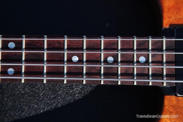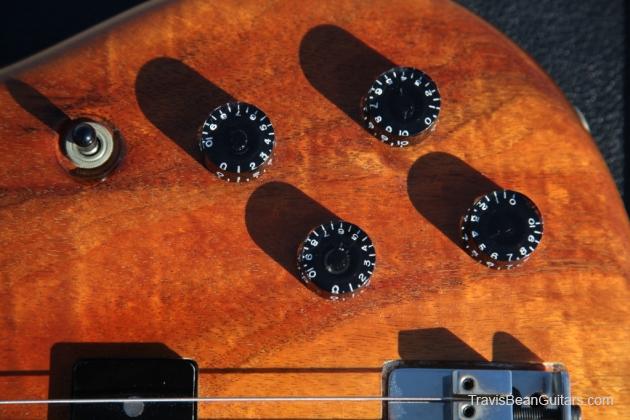 Cleanest meanest Bean I ever seen! Some very slight (Rotosound?) fret wear, otherwise almost flawless. One or two wee dings in the high gloss finish. Almost a 3D shimmer to the Koa. It flames in the light. Even the case is nearly immaculate. Resonant, vibrant, powerful, punchy, plays like butta. A knee wobbling gem.