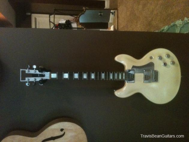 This was purchased from Guitar Resurection in Austin TX about 1982. It is owned by Bernadette Hurst, the widow of my friend Roger Hurst. He was murdered on the Pan Am flight which was bombed over Lockerbie, Scotland 12/21/1988 on his way back to USA. I am posting this for her. He is the one who introduced me to Bean guitars and I bought my #1355. She tells me the factory white finish has mellowed to a cream.