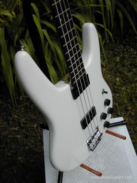 Description:   Made in 1977 (?), white, black knobs, rosewood one-piece fretboard, Schaller M4S machine heads, 33" scale, 11.6 lbs.