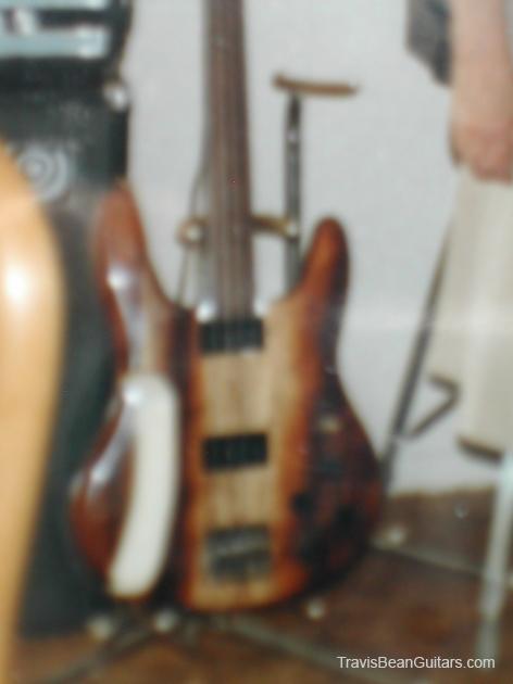 Fretless bass with ebony fretboard. Was tri-colored Koa and bookmatched with a Glen Scuirba TB Artist (number unknown) and was used for display at a NAMM show.