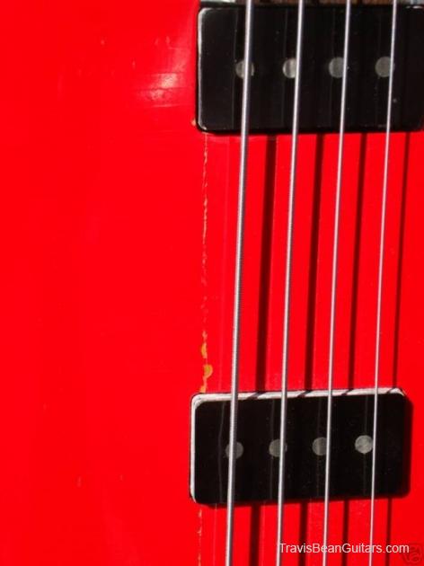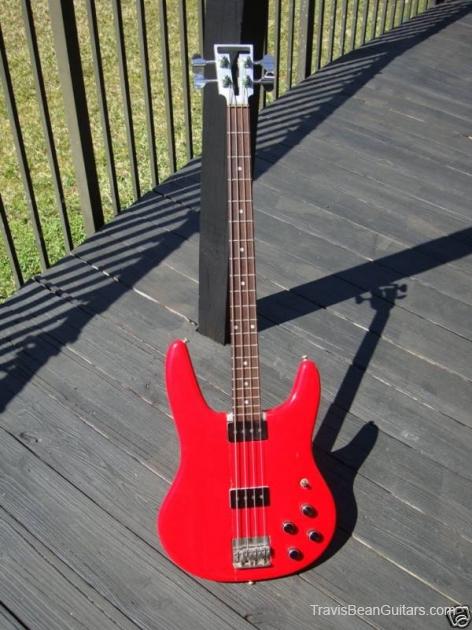 Description:   1978 Bass, wide horns, thin neck, 2 pc fingerboard, finish color: red.