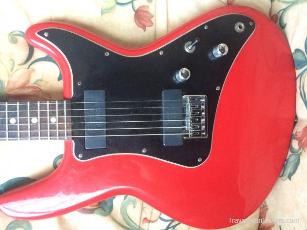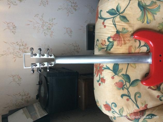 Red finish, polished aluminum neck, black pickguard