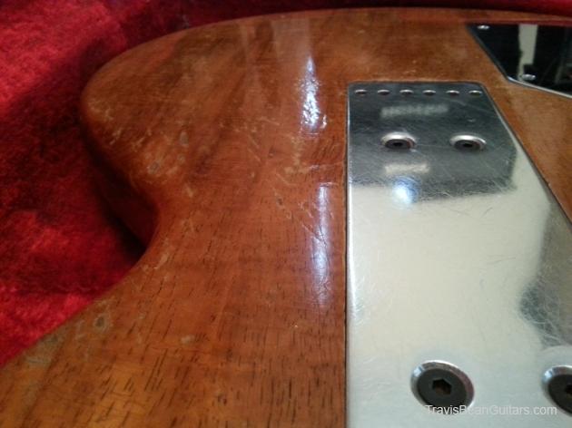 Missing Pickguard, some scratches and cosmetic damage on body.nOne Saddle has been replaced with a non-original saddle.