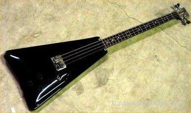 1977 Wedge Bass. Finish: pearl black, 1 pc fingerboard, refinished.