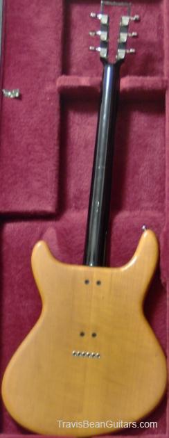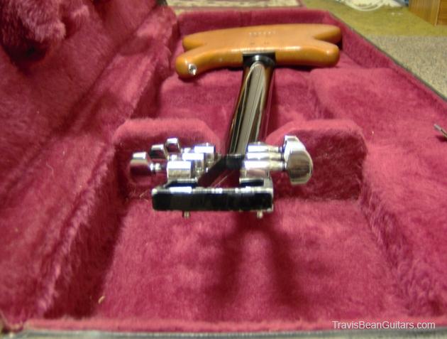 The Bean is in fair condition. It has been PLAYED. The frets and fretboard are worn, the body has been refinished (after the original finish started chipping off the back), the imron coating has chipped here and there, and set screw for the tone knob went missing and has been replaced. Further, in my foolish youth, I added an "out-of-phase" switch to the pickups to "dirty" the sound and all that remains of that is a hole in the pick guard and a patch where I soldered and taped the wiring to return the pickups to original condition. The case that came with it at purchase (purchased new @$400 as I recall) is NOT a Bean case. Other than that (he smiled) the guitar is in fine shape and still plays much the same as when I took it off the music store shelf.