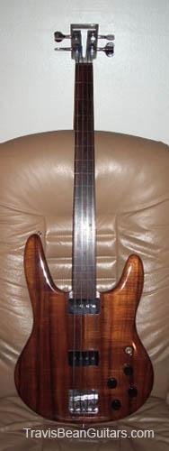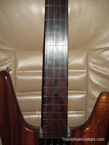 I bought this one from the original owner that was on eBay. It's still in great condition with figured reddish koa, 2pc rosewood fingerboard. Unlike other TB2000 fretless I own (SN 380), this one seems versatile to all kinds of music. Compare with the fretless, has slim body. Aluminum block is about 7mm thinner and her horns are considerably slender at the end. Rear pickup cannot lower any further because of it.
