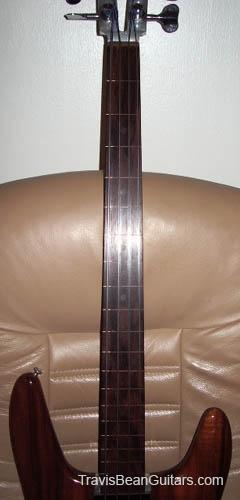 Because other fretless (sn 380) was too pristine to carrying around, I converted the fretted one to fretless in early 2004. Thanks to Mr. Kelly at Carmine Street Guitars <www.carminestreetguitars.com> the conversion was flawless. Also I ordered plastic control panel to save the weight about quarter a pound.