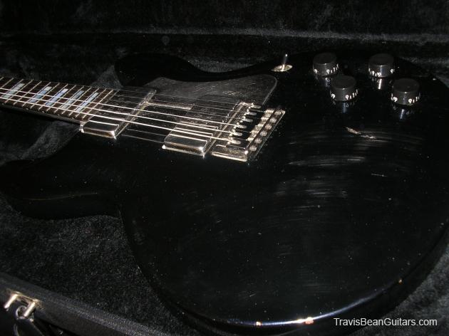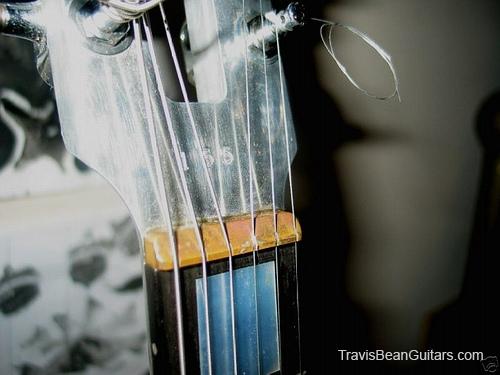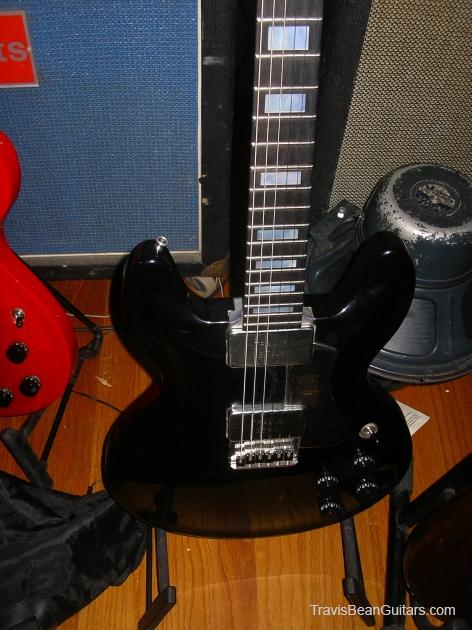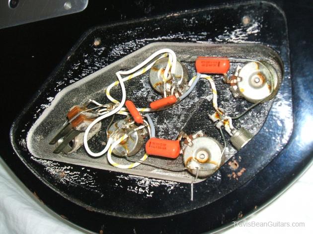 This is a storied guitar. Before buying, I emailed frank K. who was the electronics installer. I sent him photos and he recalled the guitar as a guitar that came in for repair and got a body upgrade. The electronics are Frank K. to a tee and all solder joints are virgin. This is my second favorite Bean. It plays like a dream and is the most incredibly beautiful finish i have ever seen- BLACK PEARL. It must be seen under a spotlight. i will try to get some good stage shots so you can see the blue, purple and light blue pearl.