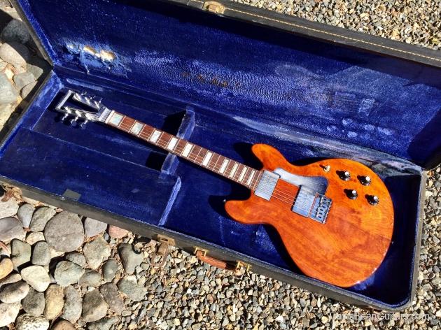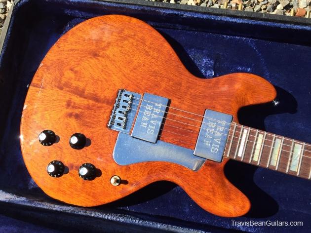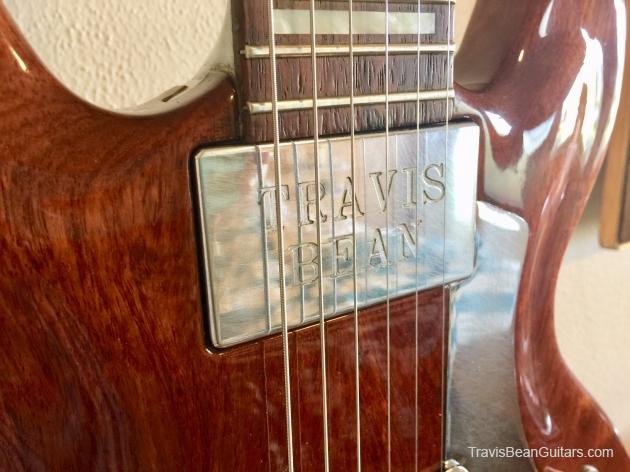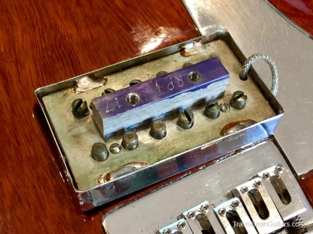 African Padauk body, believed to be the 7th of the first run of 10 regarded as prototypes. Engraved pickups, matching 1958 CTS pots (Marc & Travis bought these from a surplus store across the street). Original case, string tree, headstock angle, inlaid pickguard, strap buttons all differ from the revised production models that followed these.