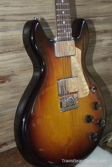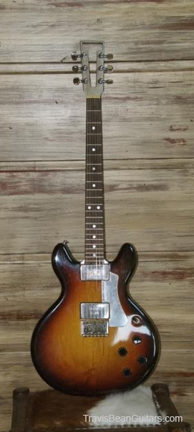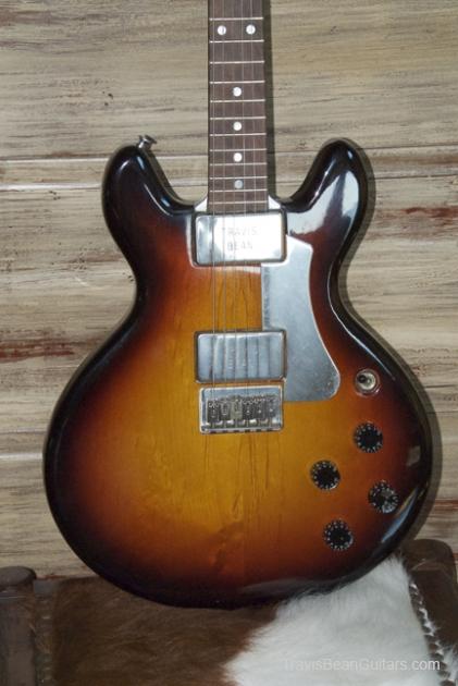 Description:   Original color was White or Ivory which has been removed to reveal Alder body finished with Tung oil. Recent refinish to a beautiful Strat-style sunburst.