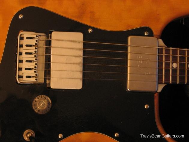 bridge PU: EGC500 single coil in humbucker casing, custom built by Kevin Burkett