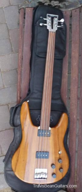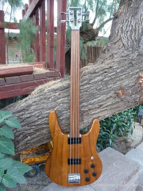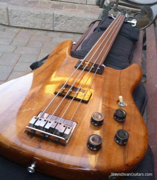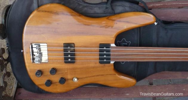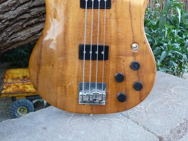 1977 Bass, width horns, thick body, 2 pc fingerboard, FRETLESS