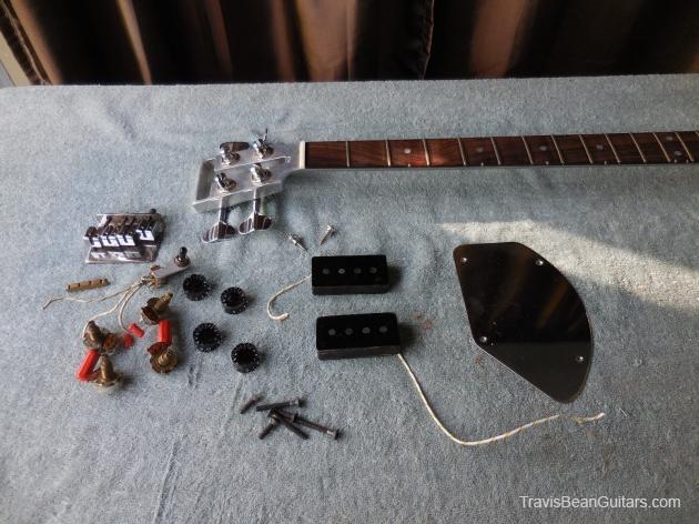 Bass was sold as parts. Missing original body. Listing included electronics, pickups, neck, non-original knobs, bridge, electronics cover plate, bolts.
