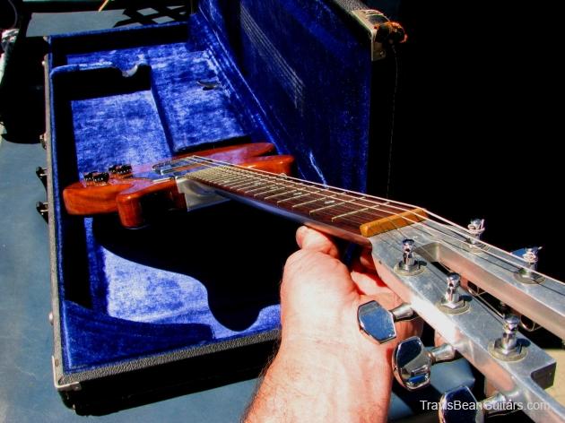In pretty great shape. Nut, frets, bridge, pickups, pots and all the mechanical stuff works perfectly. Body has scratches and dings that make it look great. Nice THICK neck like a '59 Les Paul Junior. Pickups are LOUD. Blows the Artist I used to own away.
